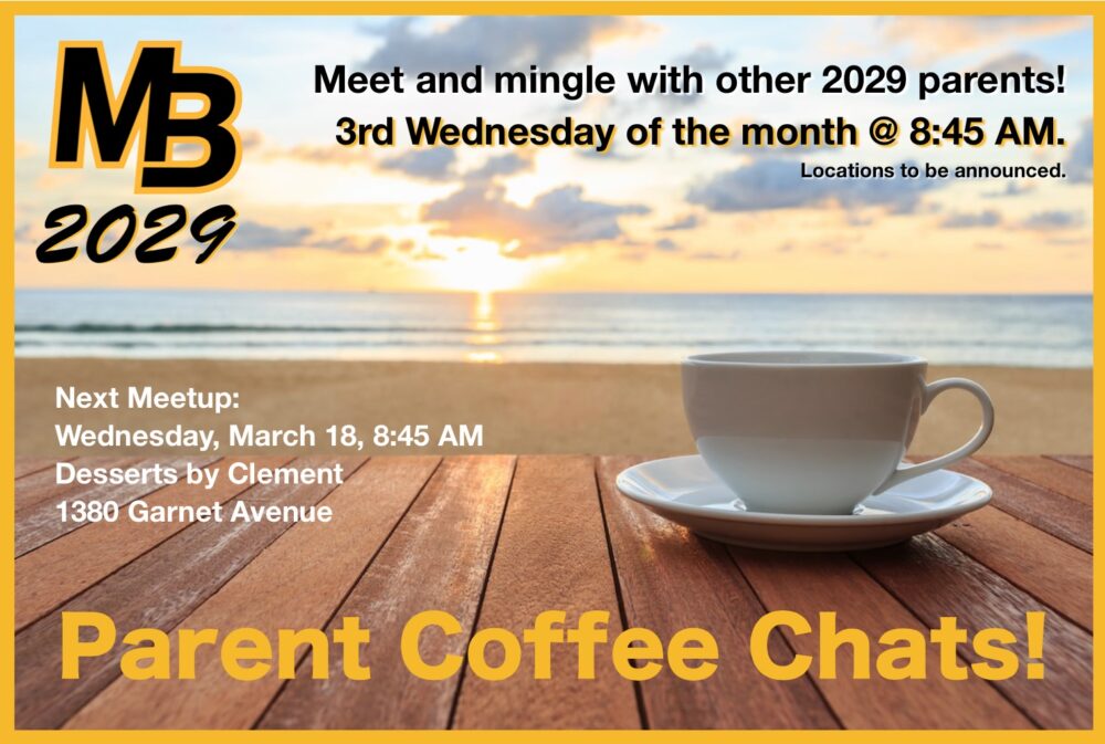 Parent Coffee Chats will be held at 8:45 AM (after drop-off) on the third Wednesday of every month! Meet and mingle with other 2029 parents. All parents and guardians are welcome.