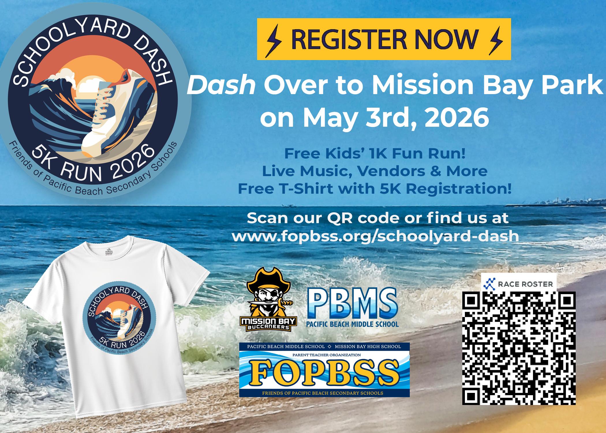 This annual event unites Pacific Beach locals with students, families, teachers, and staff from the six San Diego Unified Public Schools in the Mission Bay Cluster for a wonderful cause: to build community and raise money for Pacific Beach Middle and Mission Bay High Schools.
